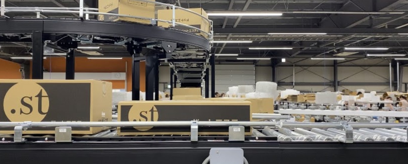 主に自社ECサイト(アンドエスティ)で購入されたお客様へ向けての発送業務を行なっています。EC物流センターは2022年7月より大型マテハン機器、AGV(棚搬送ロボット)などを導入し、スタッフの作業軽減と出荷量拡大への対応を実現しています。