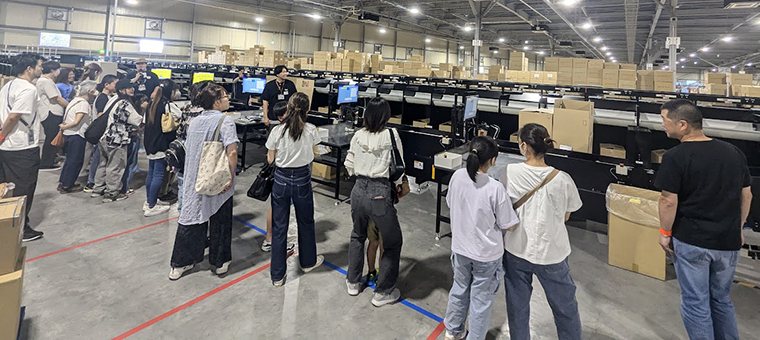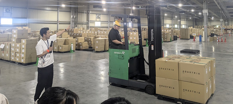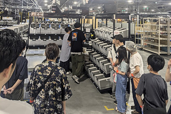 スライドで学んだことを頭に入れて早速物流センター内の見学を行ないました。みなさんきらきらと目を輝かせながら見学していたのが印象的でした。
