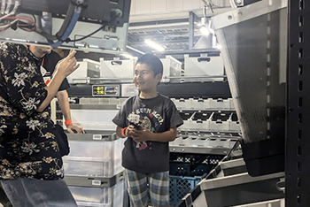 バーコードの読み取りに少々苦戦したものの、商品をスムーズにレーンに載せていてコツを掴むのがとても上手でした。また、自分がレーンに載せた商品がどのようなルートを通って仕分けられ、どの段ボールに入るのか予想しているお子さまもいてとても楽しく体験することができました。